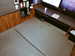 床がマットレスのようになってて、カプセルホテルより広めの部屋です( ´∀`)